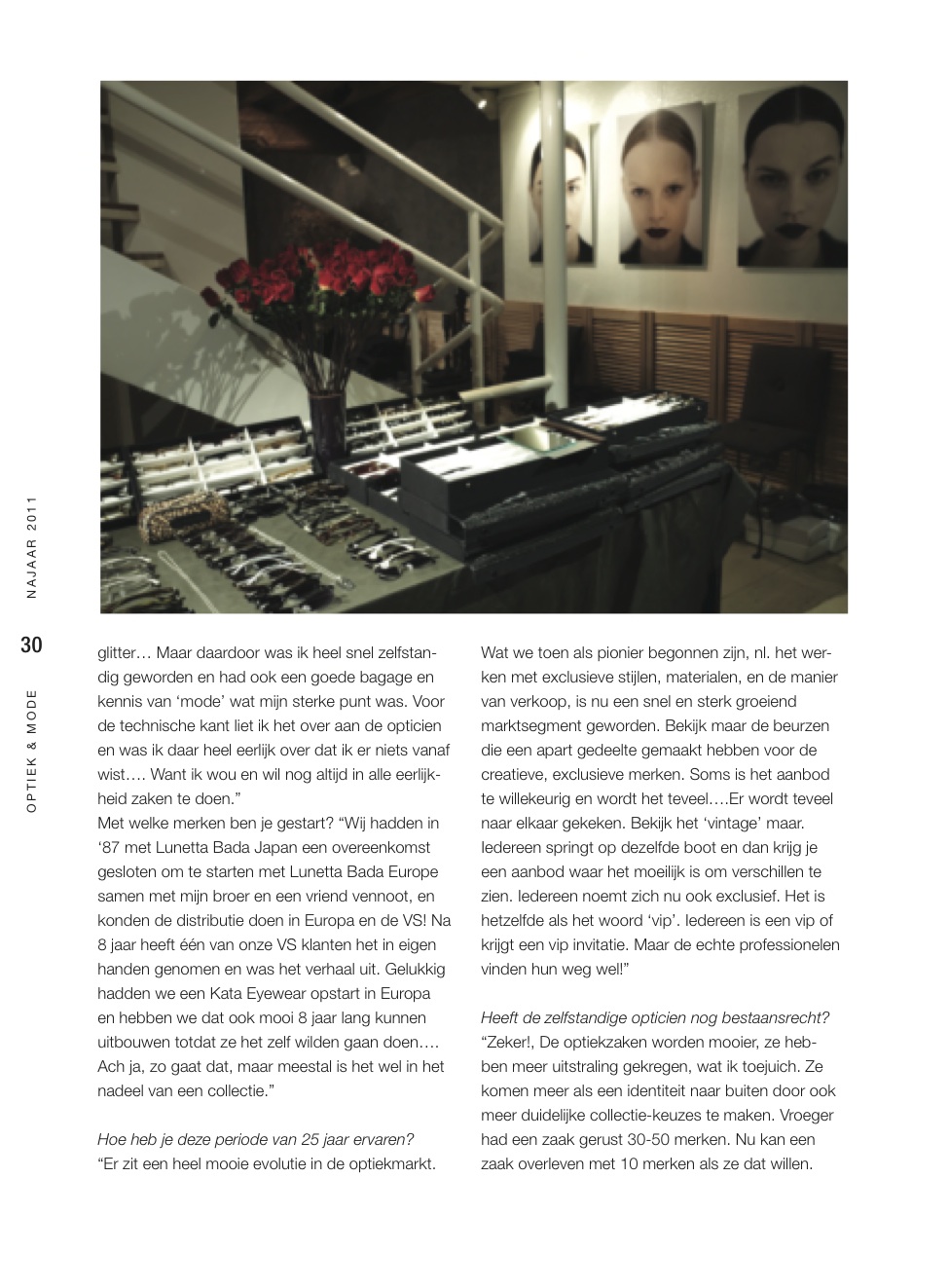 Back in Belgium, she showed it to the best and most fashionable eyeglass stores and the orders were coming in, that was the start of a long career in the optical world. Not always the most obvious brands but always very original, qualitative and exclusive. Together with partners she created a distribution company by the name of Best Regards Europe to launch the brands like Lunetta Bada, Rossanna, Men’s Club, Kata Eyewear, Hanaé Mori on the European market.