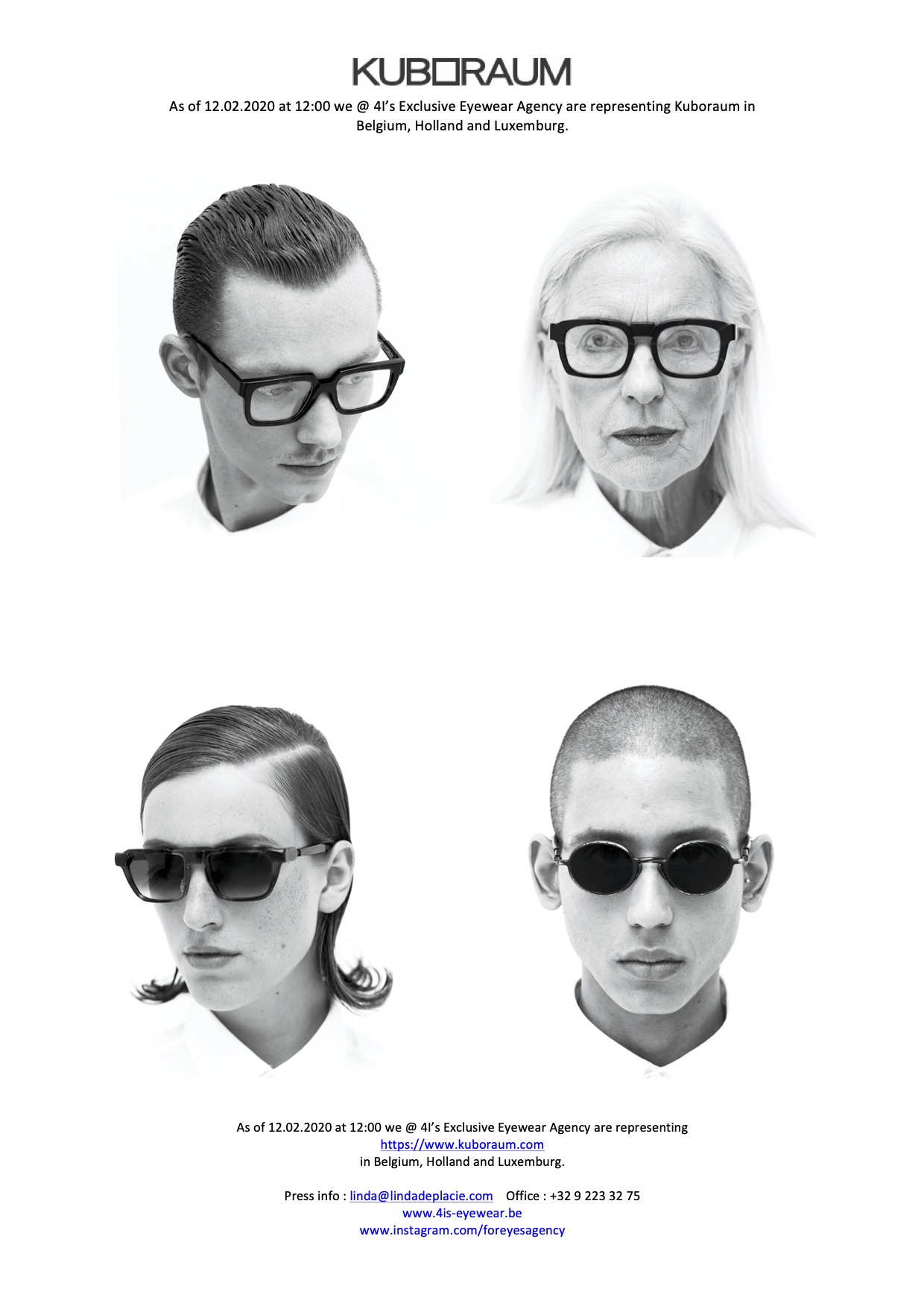 As of 12.02.2020 at 12:00 we @ 4I’s Exclusive Eyewear Agency are representing Kuboraum in Belgium, Holland and Luxemburg.